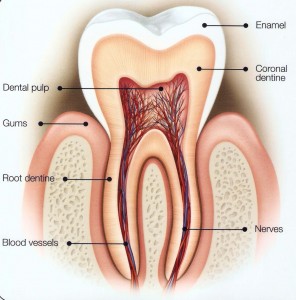 A: A pulp is damaged by tooth decay, traumatic injury, a chronic attrited teeth, erosion of tooth, a secondary infection due to periodontal / gum disease.